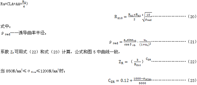 根據14.2的規定,粗糙度系數ZR是考慮齒面狀況對接觸疲勞(點蝕)強度的影響。圖5中的粗糙度系數曲線是Rz10和配對齒輪中較軟齒輪材料σHlim的函數。該圖對節點處誘導曲率半徑 的齒輪副是有效的。