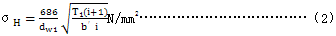 b.根據實測齒面未點蝕的當量齒寬b′按下列簡化式計算齒面接觸應力σH: