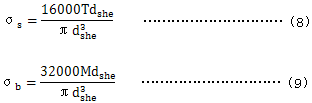 軸的名義應力按以下公式計算。公式(6)與公式(7)可應用于薄壁軸的設計,這里比值dshi/dshe<0.9是不允許的。
