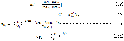 式中:Nj、σFj、YδrelTj的下標(biāo)j表示靜強(qiáng)度時的值,見圖D1。