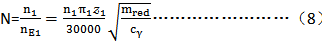 在多點嚙合齒輪系中有多個固有頻率,這些頻率可能高于或低于只有一點嚙合的單級齒輪副的固有頻率。當這樣的齒輪在超臨界區運轉時,建議用A法進行分析,見ISO6336-1:1996的6.3.1。