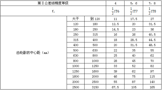 注:一個軸向齒距內的齒向公差按軸向齒距查表。