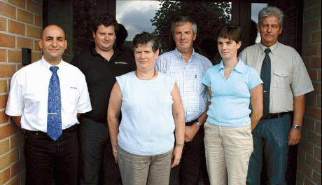 家族業務:左起,山高刀具公司產品專家 Lahoucine Akechtabou、公司經理 Stefaan Vancoillie、行政主管 Ingrid Vancoillie、公司持有者 José Vancoillie、財務主管 Isabelle Vancoillie 和山高刀具公司地區經理 Dirk Van Landuyt。