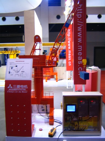 在2008年4月舉行的“第二屆中國(上海)國際起重機械及配件展覽會”上,三菱電機首次向眾人展示了起重行業的綜合解決方案。6套色彩鮮艷并按真實起重機等比縮小的模型,演示著6項各不相同的控制功能,吸引了觀眾的目光。功能簡介如下: