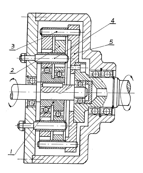 | 一種鼠籠型蠕動(dòng)減速機(jī)其特征是:外蠕動(dòng)輪殼(5)外周均布安裝多個(gè)圓形滾動(dòng)軸套體(3)組成鼠籠型圓柱齒環(huán),內(nèi)蠕動(dòng)輪(2)外周均布的半圓弧凹齒數(shù)比鼠籠型圓柱齒環(huán)少一個(gè)齒距,組成一齒差行星多元化杠桿付傳動(dòng)結(jié)構(gòu),偏心軸套(1)旋轉(zhuǎn)一周,內(nèi)蠕動(dòng)輪(2)、圓形滾動(dòng)軸套體(3)嚙合的半圓弧齒面連續(xù)順延的作徑、切向擠壓傳動(dòng)后,相對(duì)位移一個(gè)齒距。 |