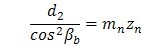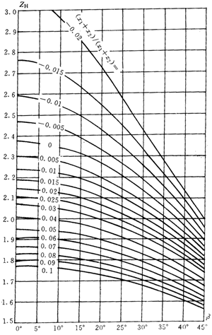 式中:zn1,zn2——小、大(斜)齒輪當量齒數。對于內嚙合齒輪,式中(150)中的,zn2應取為無限大。