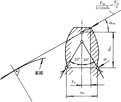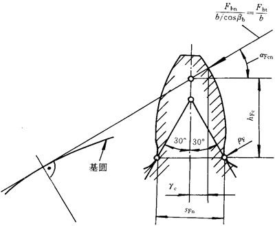 ρF——30°切線切點處曲率半徑。外齒輪由式(182)計算,內齒輪由式(195)計算。