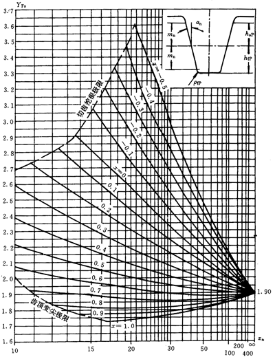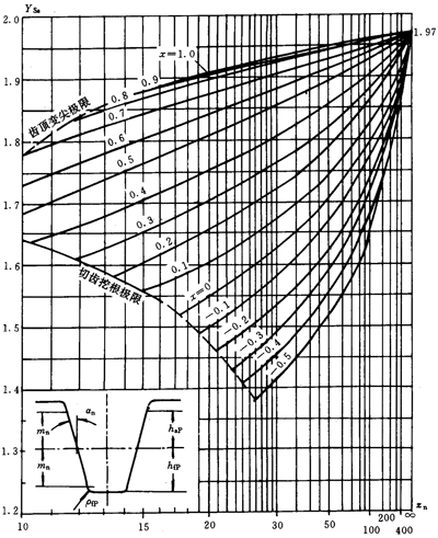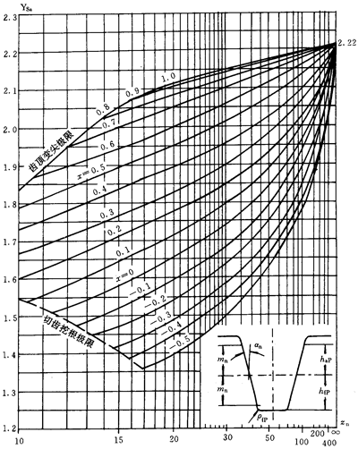 應力修正系數Ysa僅能與齒形系數YFa聯用,并且只能用于εan<2的齒輪傳動。