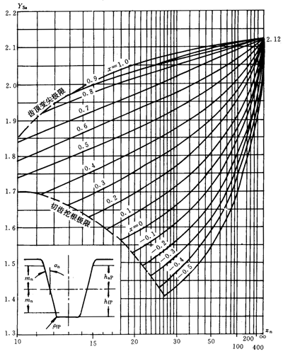 應力修正系數Ys和Ysa是將名義彎曲應力換算成齒根局部應力的系數。它考慮了齒根過渡曲線處的應力集中效應,以及彎曲應力以外的其他應力對齒根應力的影響。