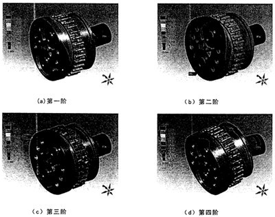 對上圖有限元模型進行模態計算時不必求出全部的固有頻率和振型,越是低價模態,對振動影響越大,通常取前5~10階模態,精度就已足夠。本課題在分析中求解了前11階模態,這些模態的固頻率和振型情況見表5-1,圖5-2僅給出減速器的前6階固有振型,通過振型圖和各階振型的動畫顯示,可直觀地分析RV減速器的動態特性。