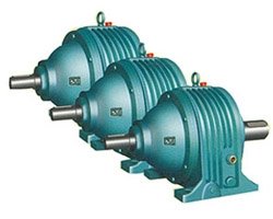 NGW型行星齒輪減速機吳橋博達減速機有限公司專業生產。NGW型行星齒輪減速機主要構建有太陽輪、行星輪、內齒圈、行星架。 為了使三個行星輪的載荷均勻分配,采用了齒式浮動機構,即太陽輪或行星架浮動,或者太陽輪、行星架兩者同時浮動。減速機中的齒輪為直齒漸開線圓柱齒輪。具有一下特點: 1、體積小、重量輕、在相同情況下,比普通漸開線圓柱齒輪減速機重量輕1/2以上,體積小1/2~1/3。 2、傳動效率高:單級行星齒輪減速機達97%~98%;兩級行星齒輪減速機達94%~96%;三級行星齒輪減速機91%~94%。 3、傳動功率范圍大:可以從小于1KW至1300KW,甚至更大。 4、傳動范圍大:i=2.8~2000 5、適應性強且耐用。主要零件均采用優質合金鋼經滲碳淬火或氮化處理,行星齒輪減速機運轉平穩、噪音小、使用受命10以上。 6、用途和適用條件 NGW型行星齒輪減速器有單級(NGW11—NGW121),兩級(NGW42—NGW122)三級 (NGW73—NGW123)三個臥式系列。主要用于冶金、礦山、起重運輸機械設備,也可用于其它類似工礦條件下作動力傳動。 高速軸最高速不超過1500r/min 齒輪圓周速度不超過10m/s; 工作環境溫度為-40℃—45℃; 可正反兩向運轉。