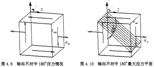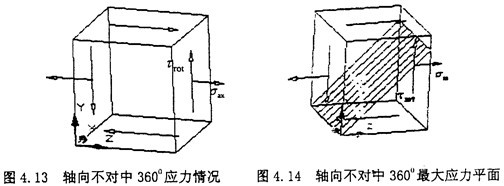 此時(shí)的應(yīng)力情況屬于三向應(yīng)力狀態(tài),所以其分析過(guò)程和徑向不對(duì)中900以及2700情況相似,只是這里還有了附加的軸向拉應(yīng)力和附加的角向應(yīng)力,將各個(gè)應(yīng)力值