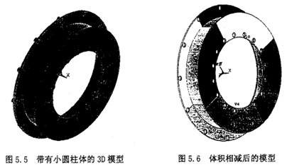 進行體相減,生成系列小孔。主要用到Subtract命令,先選擇兩上大面,然后選上所有的小圓柱體。最后有Replot命令生成新圖形。結果如圖5.6所示。