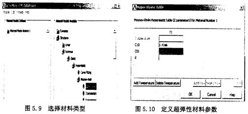 考慮到分析橡膠材料所能用到的單元,選擇Main Menu>Preprocessor>Element type>Add/Edit/Delete,在出現的對話框中,單擊“Add”,如圖5.7所示。這時又出現一個“Library of Element Type”對話框,在左面的列表欄中選擇“Structural Solid”,在其右面的列表欄中選擇“2Onode186”,單擊0K按鈕,如圖5.8。再在單元對話框中單擊Close按鈕關閉對話框。