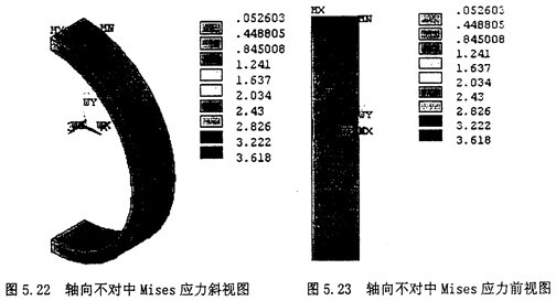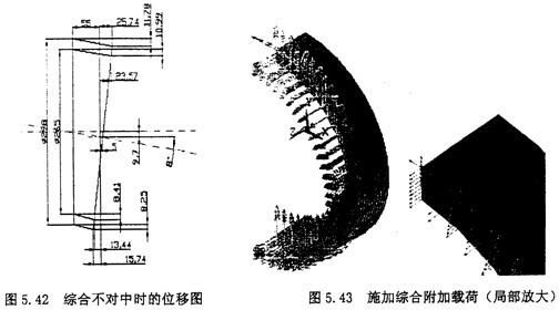重復5.4.2節中的(1),(2),(3),(4),(5),(6)步驟。然后開始施加綜合的附加載荷。由于綜合位移使得橡膠圓環附加的徑向拉應力σax,附加的剪應力τrad,附加的角向應力σax,以及由橡膠圓環旋轉扭矩產生的剪應力τrot。所以綜合不對中的應力情況應該是σax、σax、σax與σrot的疊加。施加綜合附加載荷后的圖形圖5.43所示。