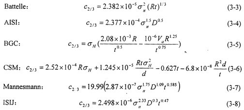 在雙曲線法的基礎上,結合大量的實驗結果對止裂韌性進行標定,世界各大研究機構分別給出了簡便易算的經驗公式用以估算臨界止裂韌性,列舉如下: