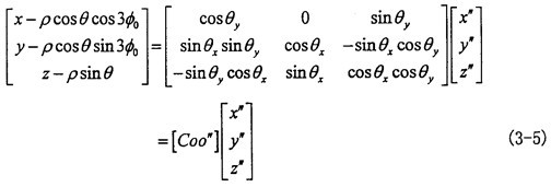 由式(3-6)可知|θy|<θ,|θx|<θ一般來說θ值非常小,則θy和θx則更小。到此方向余弦矩陣[Coo″]的所有項均可求出。其具體的形式如下(為簡化書寫將θy作為已知參數代入):