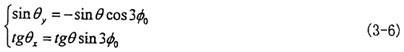 由式(3-1o)中的(1)、(2)兩式,消去x″,即可求出輸入角 同輸出角 的