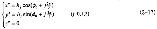 為求出這個參數方程,我們必須解決動坐標系O″X″Y″Z″同定坐標系OXYZ之間的坐標變換矩陣[Moo″]。
