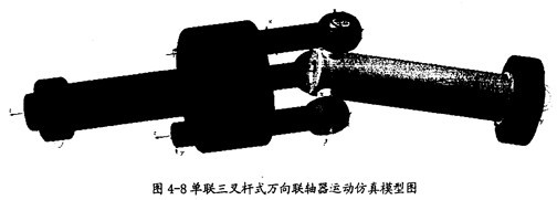 單聯三叉桿式萬向聯軸器同雙聯三叉桿式萬向聯軸器的運動規律有的發生了改變,有的保持不變,特別是輸出軸的轉速特性在雙聯時同單聯時幾乎無變化。