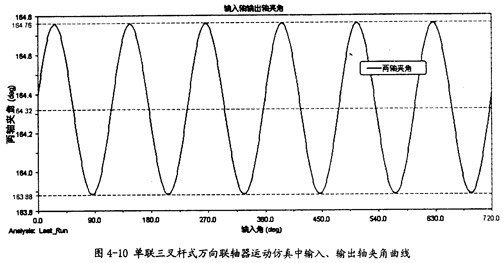 通過以上的結果分析,可以確定的說,單聯三叉桿式萬向聯軸器的理論分析結果和其計算機仿真的結果可以相互驗證,這在一定的程度上說明以前的理論分析是正確的。