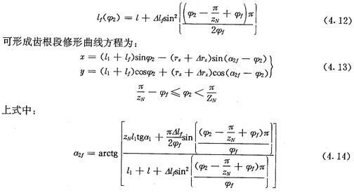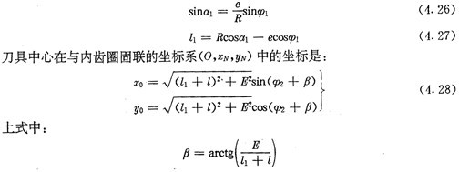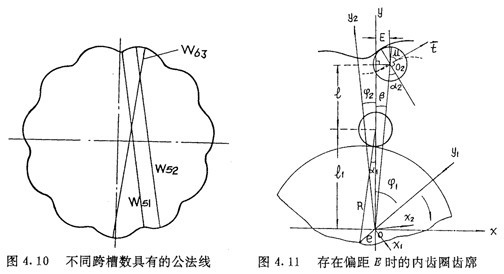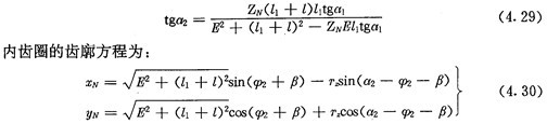 若令(4.30)式和(4.31)式中的E=0,得到的就是無偏距時的內齒圈齒廓理論方程式(2.21)及公法線長度(4.18)式。