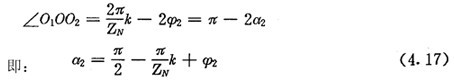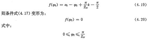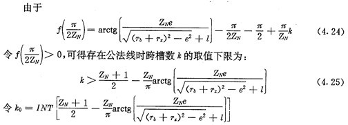 上式就是齒廓AB上與跨槽數為k的齒廓具有公法線的點的條件。當k確定后,若存在公法線,則由(4.17)式并結合基本關系式(2.38)等可解出