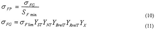 式中:σFG一一計算齒輪的彎曲極限應力,N/mm2;