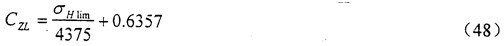 其中,在850N/mm2≤σHlim≤1200N/mm2范圍內,CZL可由式(50)算得。當σHlim<850N/mm2時以850N/mm2時以850N/mm2時以850N/mm2計,當σHlim>1200N/mm2計。