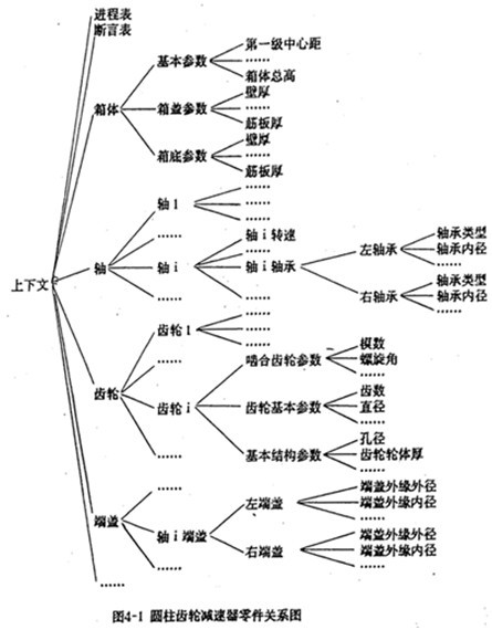 2.上下文的組成:圓柱齒輪減速器設計專家系統的上下文由三部分組成,它們分別是斷言表(ASSAERTIONS)、設計參數表(PARA METERAS)和進程表(HlSTORY)。