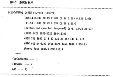 軸、箱體以及對大型組裝具輪采用的支撐部分的材料的選擇方法類同于齒輪材料,在此不詳細討論。若當前材料數據庫無可供選擇的材料時,系統便要求用戶輸入指定的材料特性,并按相應的格式加入到材料數據庫,以便不斷地完善系統的材料庫。