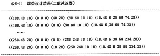 圓柱齒輪減速器設計完成后,其結果為一系列表(LISP 語言形式)組成的結果。為了使專家系統的結果方便地被用戶所理解,系統設置有相應的輸出函數,并以表格的形式,輸出所需的設計數據。下表(表6-16 )為專家系統設計的一一級圓柱齒輪減速器的示例。