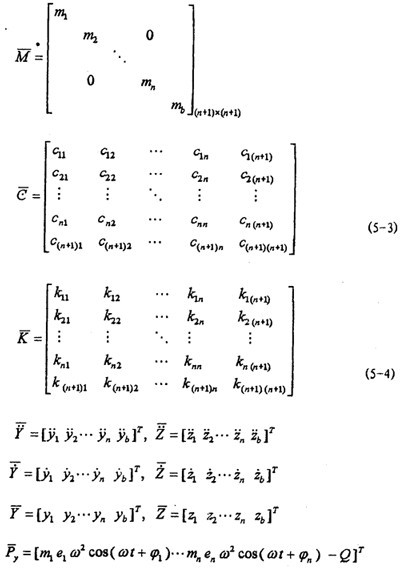 當主機以角速度ω轉動時,軸系在各偏心力的作用下產生穩態振動,其運動微分方程可表示為: