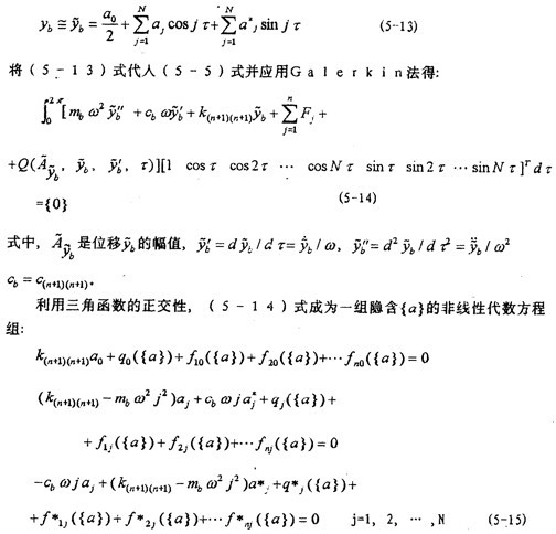 {fj({ a(k)})}是式(5-6)中恢復力Fj的傅立葉級數展開式各諧波分量的系數向量。當向量{ a(k)}給定時,首先由5-2節中所述方法算得各個 和 (j=1,2,…,n),其次由(5-6)式中恢復力Fj的各諧波分量的系數向量{fj({ a(k)})}。