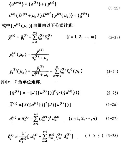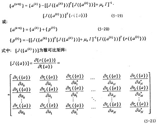 [J3]的計算實際上就是偏導數 {fj({ a(k)})}/ { a(k)}的計算。計算方法與計算 {q({ a(k)})}的方法類似,故不再贅述。對于[J2],[J3]、分別有式(5-34)、(5-35)。