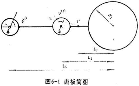 齒板簡圖如圖6-1所示。以齒板支承軸孔與偏心套的接觸點為參考點,則齒板質心的位移為