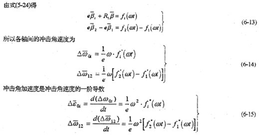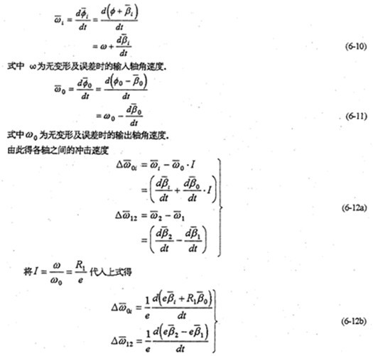 由于減速器機構的變形及各構件的誤差,使各傳動軸的角速度及角加速度不再滿足條件式(6-8)及式(6-9),亦在運轉過程中各軸之間存在角速度及角加速度的沖擊現象。該沖擊將直接導致系統振動,使輸出速度產生波動、降低其輸出的穩定性,并產生沖擊載荷。