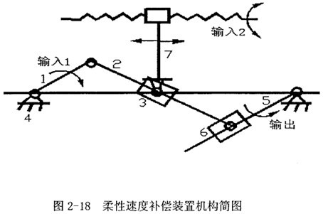 在這里該柔性速度補償裝置的特點可以簡述為,實質是一個二自由度機構,用一個等速電機驅動一個輸入構件,而另用一個伺服電機對另一輸入構件進行控制與調整,控制器和檢測系統判斷原執行機構速度波動的狀況,根據波動情況實時控制伺服電機對二自由度機構的輸入速度和結構參數進行調整,得到可控制的速度波,以和原執行機構的速度波疊加抵消,得到理想的速度輸出。