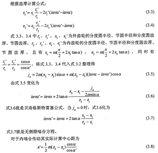 聯系式3.6與式3.8,從兩工中可以看出,計算中心距a′與嚙合角
