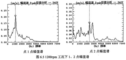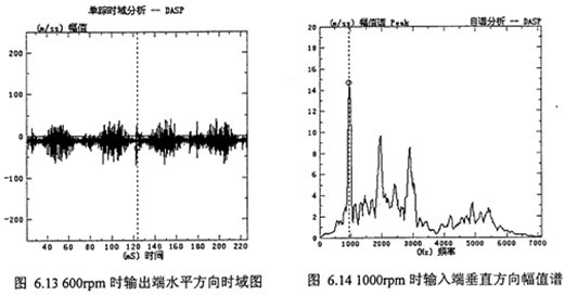 (3)從表6.1及圖6.5分析可看出,各測點振動幅值譜嚙合頻率及兩倍嚙合頻率其幅值為最大或較大,表明減速器兩端偏心軸轉(zhuǎn)動一周過“死點”位置時,減速器有沖擊振動現(xiàn)象。