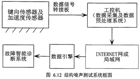 實驗裝置共有兩大部分,一部分是實時監(jiān)測及數(shù)據(jù)采集,一部分是信號分析處理系統(tǒng)。其測試系統(tǒng)框圖如圖6.12所示。