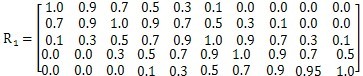 3.確定閾值及其矩陣 閾值即為轉(zhuǎn)折點(diǎn)值,可按某種規(guī)則取得,也可按照經(jīng)驗(yàn)或類比的方法獲得,或直接從角矩陣中獲得相對閾值,即在象矩陣中尋找最大、最小、中等閾值,方法如下: