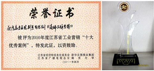 為貫徹落實省委十一屆十次全會精神,加快推進“轉型升級工程”和“科技創新工程”,4月26日,江蘇省工業營銷創新大會暨2010十大優秀案例/風云人物頒獎典禮在蘇州國際博覽中心隆重舉行,南京高精傳動設備制造集團有限公司(簡稱:南高齒)下屬子公司--南京高速齒輪制造有限公司榮獲2010江蘇省工業營銷十大優秀案例獎項。