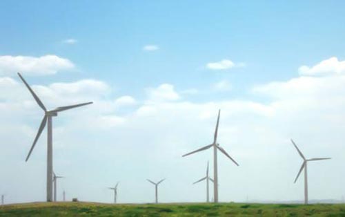 上圖為裝有南高齒FD1660F 型1.5MW風電齒輪箱的風力發電機組在內蒙古烏拉特風場