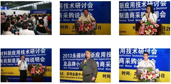 6月26日下午,2013品牌小電機企業(yè)采購說明會在深圳會展中心8號館舉行。深圳拓邦股份有限公司電機事業(yè)部品質經(jīng)理田慶生先生介紹了節(jié)能無刷及空心杯電機的發(fā)展趨勢和采購需求;麥提斯儀器負責人呂克.范.簿克斯達爾博士深入介紹了最新一代永磁質量控制技術;徐州市嘉迪汽車電器有限公司總工程師劉洪祥先生對電機銅導線專用熔焊機做了技術介紹。當晚,全國非晶材料學術委員會秘書長張華先生、亞洲釹鐵硼協(xié)會秘書長兼寧波億邁克思集團董事長鄭森先生、中國電子材料行業(yè)協(xié)會磁性材料分會副秘書長翁興園先生、廣東省家用電器行業(yè)協(xié)會會長張小明先生、廣東省家用電器行業(yè)協(xié)會副秘書長黃丹先生出席了2013品牌小電機供需雙方聯(lián)誼晚宴并致辭,在短短一個小時的晚宴上與來自全國各地的小電機制造商、供應商廣交朋友,尋求合作!