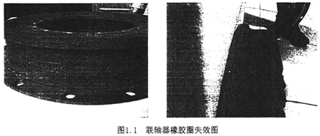 彈性聯軸器是應用廣泛的機械零部件,在工業生產,石油,化工,冶金等工業部門都有應用,彈性聯軸器的使用狀況直接關系到機械設備的安全及壽命問題,尤其是一些重要場合,彈性聯軸器的失效問題往往引起人們的極大關注,例如某公司的GKZ型內燃機車采用MTU16V396TC14型柴油機做內燃機。MTU柴油機與風扇偶合器采用萬向軸來傳遞動力。為了緩和沖擊力,柴油機輸出軸與萬向軸聯接采用彈性聯軸器。0002#機車使用7年后,彈性聯軸器被剪斷,剪斷后的聯軸器如圖1.1所示。更換同種型號的彈性聯軸器后,使用未到一年又被剪斷,而同一型號的0001#,0003#機車使用時間以達9年,但彈性聯軸器依然完好如初。