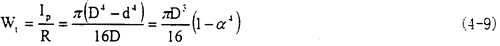 ,導(dǎo)出的公式中引進(jìn)了截面極慣性矩和抗扭截面系數(shù),在空心軸的情況下有