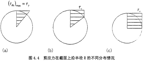 此時(shí)剪應(yīng)力在截面上沿半徑R的分布情況見如圖4.4(b)所示。