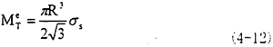 (2)當(dāng)圓軸整個(gè)截面都進(jìn)入塑性狀態(tài),如圖4.4(c),此時(shí)的扭矩就是圓軸的塑性極限