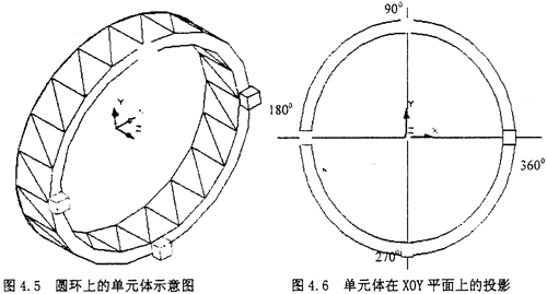 在像膠右端面圓環(huán)上取單元體,且在分析過程中時(shí)取關(guān)鍵的四個(gè)象限點(diǎn)的位置作為研究對(duì)象,分別為90°,180°,270°,360°位置為研究對(duì)象。后面的徑向不對(duì)中、角向不對(duì)中以及綜合不對(duì)中也采用相同的4個(gè)位置進(jìn)行分析。